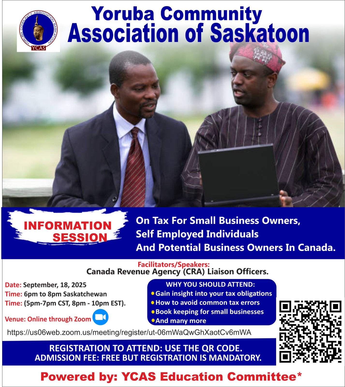 The education committee of the Yoruba Community Association Saskatoon is inviting you to an